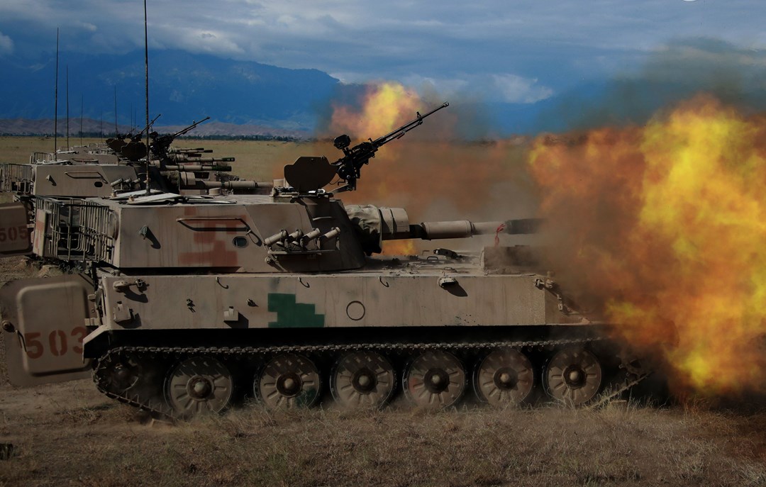 The Type 89 SPH is armed with a 122 mm/L32 howitzer as main armament. This ordnance is derived from the Type 86 (W-86) 122 mm/32-caliber towed howitzer, itself a licensed copy of the Soviet D-30 122 mm howitzer of the late 1950s. For this small size, 40 rounds are carried inside the turret. The gun itself has a semi-automatic loader, enabling a maximum rate of fire of 6–8 rounds per min. Fire accuracy counts of a Chinese domestic digital fire-control system (computerised) and the a electro-optical sight for day/night operations on the left above the gunner's position as seen above. This caliber makes it compatible with a wide array of Chinese and Russian 122 mm ammunition. Best range is 18 km (11 mi) with standard HE projectiles, but 21 km (13 mi) with extended-range projectiles, full bore, hollow base (ERFB-HB). The secondary armament comprises an optionally roof-mounted QJC-88 12.7 mm heavy AA machine gun. The two sets of 4-barrel could also deliver anti-personal grenades in addition to smoke.Service