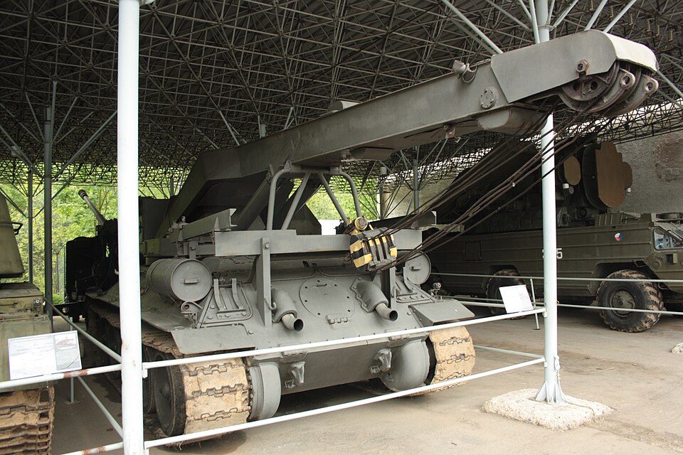 Postwar, Czechoslovakia ws aligned on the defensive network under the Warsaw Pact dominated by Soviet doctrines and hardware. The first Czechlosoval tank of the cold war, was the T-34-85CZ a variant of the T-34-85 made in Czechoslovakia. There was also a T-34/100 proposed modification with as large mantlet mounting a Czech 100mm gun as a tank hunter, never built. Later, the same chassis was reused for three main support vehicles: The MT-34 (1950s) ("mostní tank" or "bridging tank"), a conversion with a PM-34 scissors bridge carried on rollers, on top of a turretless T-34. Next was the VT-34 (VT vyprošťovací tank or "recovery tank") and last but not least, the subject of today, the JT-34, a purpose-built crane vehicle.JT 34 was in fact the first project developed entirely at J. V. Stalin Plant, in Martin, Czechoslovakia. Development started in 1957 based on requirements from the Tank and Automobile Administration under the Ministry of National Defense. In 1958, the fist converted T-34 chassis fitted with a hydraulically operated system was created, then another, modified into a final prototype in 1959 usable for field tests. In 1960, the trials at the factory were complete and it was passed on to the Czech military test and control authorities, for a campaign of trials starting at the start of 1961, until the development was completed.