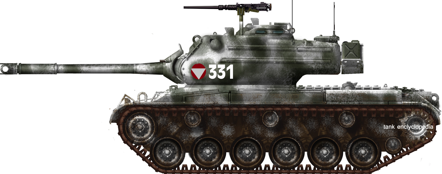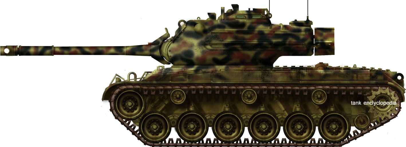 The M47 was a relatively short-lived MBT (then called "medium tank" created to replace the M46 Patton/M26 Pershing and the M4 Sherman). It was widely produced to fit the needs of the US Army, US Marines, but also NATO nations as a whole as a stopgap measure before new models could be built locally.Although a good all-over tank, the M47 Patton was used only for a few years, before its replacement by the M48 in 1953 which was really a generation ahead. Declared obsolete in 1957, the impression it left and service time nevertheless far outlasted the fifties under other colors. The Soviet T-54 was modified to face it and the M47 defeated many foreign-built models with success, even taking part in massive tank battles.