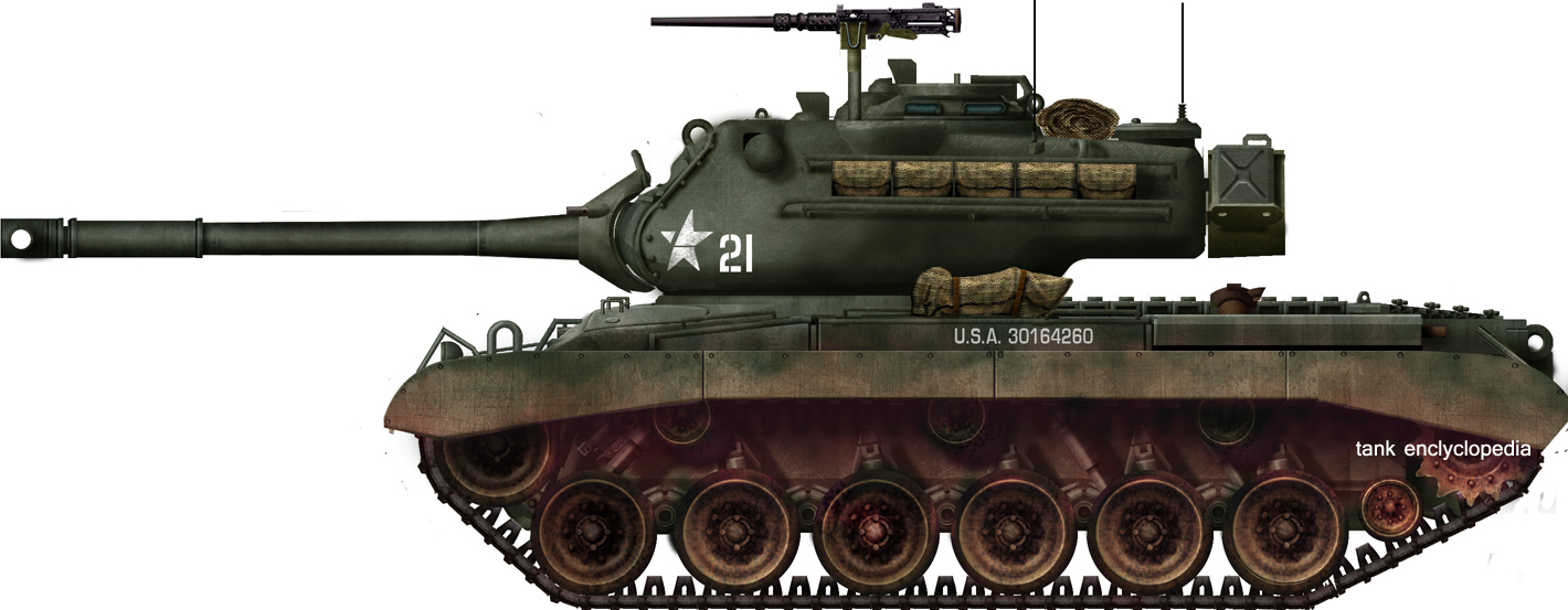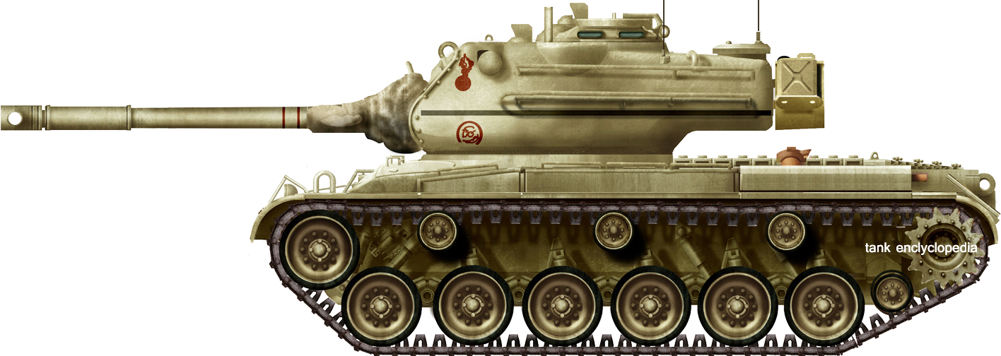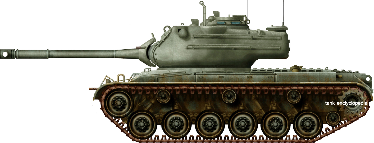 Pilot combining an M46 hull with the T42 turret, M36 90 mm Gun. The latter was elongated to incorporate a radio, ventilator, and widened for a stereoscopic rangefinder. Single one built and evaluated before production was greenlighted.