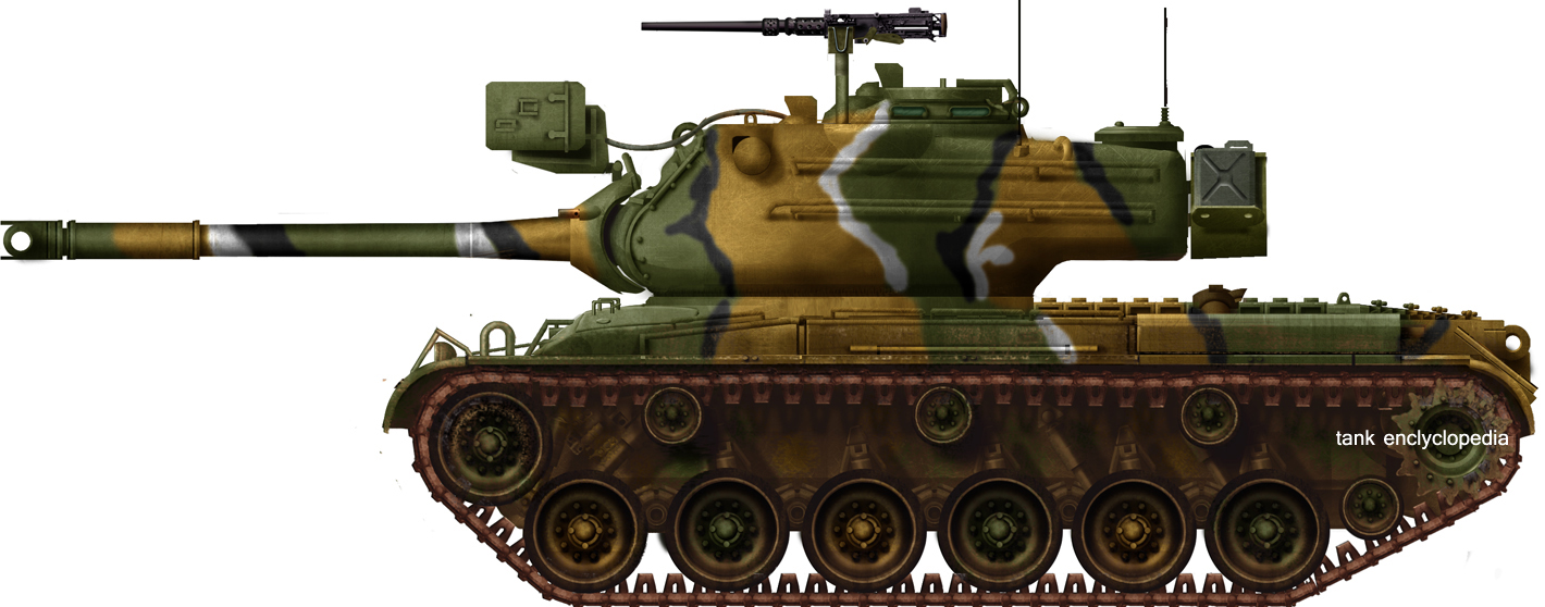 This much improved model started in the late 1960s. This tank featured the engine and fire control elements from the M60A1 and the assistant driver's position was eliminated (for more 90 mm ammo). Apparently, 800 of these modified vehicles were produced for export and sold to Iran and Pakistan. Later on in the 1980s, Iran devised its own modernization program called the Sabalan. This version had full side skirts, a completely rebuilt turret fitted with a 105 mm gun, a modern laser range finder, and a new fire control system and communication equipment.