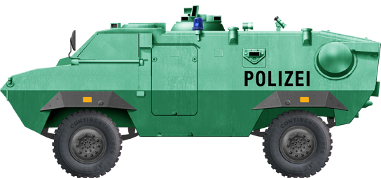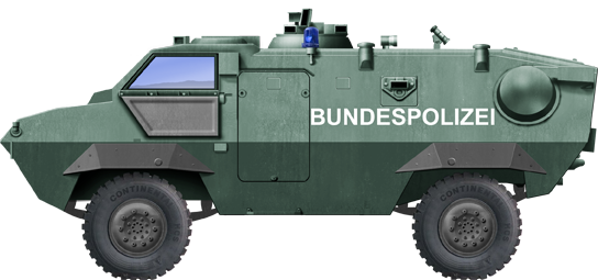 In its police rome, the TM-170 was tailored for Public Order and Crowd Control, by Police forces. In Germany it is the Bereitschaftspolizei of state police forces, operating notably as airport security enforcement and under the supervision of the Federal Police or Bundespolizei. The former Bundesgrenzschutz was renamed into Bundespolizei in 2005. In total it acquired a park of 121 TM 170s, all since the 2010s phased out of service. In 1995/1996, these vehicles were transferred from the Federal Border Guard to the German Armed Forces, which initially intended to have them named "Hermelin" (German for). However, the Army decided instead to have them sold after negociations to North Macedonia instead. The German Federal Police planning to decommission the SW 4 to be replaced by Mowag Eagle IV and LAPV Enok 6.1. In 2019, the German Federal Police still possessed forty-six SW 4s in inventory. However the vehicle is sitll actively used by many militaries, police authorities and private companies.