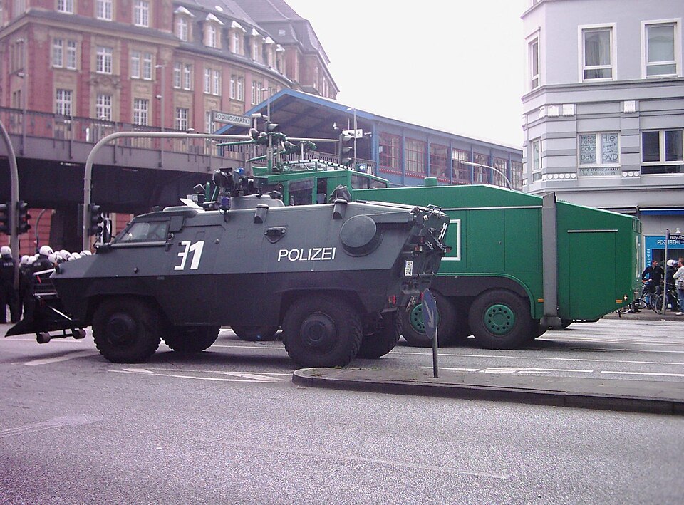 Thus, in addition to two small arms, the vehicle has a turret with a pintle or ring-mounted standard (7.62 mm) machine gun. The turret was made by Kuka, now Rheinmetall Landsysteme and could be modified to also received up to a 20 mm or even 25 mm Rheinmetall cannons. This turret would received side and back cover for the user, and be armed with 7.62 mm or 12.7 mm machine guns. Although not a weapon per se, when used for riot control, the TM 170 could receive a 1,000 litre water tank and CN/CS gas tank for a water cannon that could eject water/gas mixture up to 50 m at 360°.