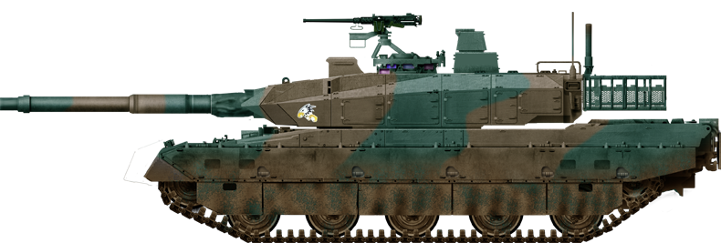 Its Fire Control & Electronics copprises a State-of-the-art fire-control suite with automatic target tracking, Hunter-killer capability (the commander could detect and pass on targets to the gunner, and continue scanning) as well as day/night thermal imaging for all three (drive commander and gunner) with greater magnification to fire at 4 km, including on the move at speed thanks to the fully stabilized main gun. This tank was also the first fully integrated into Japan’s C4I network, allows coordinated targeting with other units.