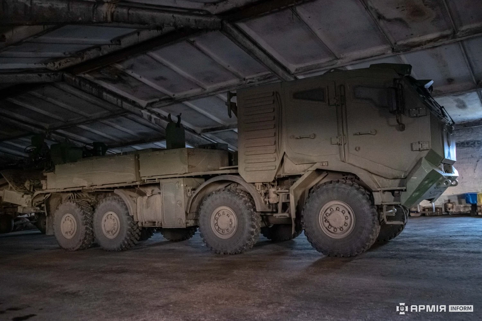 Bohdana 4.0: Latest production version (Tatra 158 Phoenix 8x8 chassis) with an Ukrarmor cabin and semi automatic loading system.