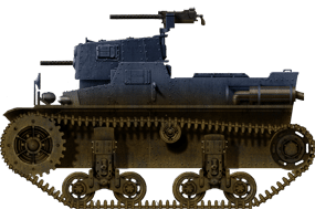 The turret was larger than other models to contain a rare sight: A twin mounted semi-automatic 37mm L.44 guns, designed by the US Armament Corporation. Each was loaded with clip of five shells for fast firing before reload. The first issue was that this reload system was unrealiable and tests at Aberdeen were disastrous. The second was accuracy with muzzle interference. At least there was a.30 cal machine-gun mounted coaxially, and a ball-mounted in the right hull and front of the turret plus two optonal at the back of the turret on pintles to be used for aircraft. Two more could be also mounted, but fixed in the hull, optional. There was even a seventh in a ball-mount. This amount was typical of US tank production of the time like the M1 Medium, M2 and M3 light tanjs.