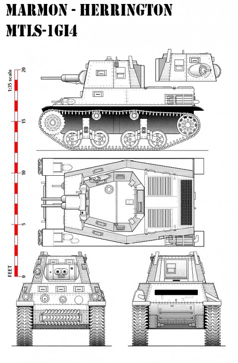 The MTLS was an enlarged CTMS, based on the CTLS or "Combat Tank Light series" from Marmon-Herrington, developed from 1936. It had reinforced vertical volute spring suspension but even this was not enough for an overall weight of 22 US tons. The armor thickness was still relatively light, at 1.5 inches (38mm) for the nose, and half inch of 13mm on top and side. It had also larger tracks compared to other models at 18 inches (46cm) wide and was powered by a more serious Hercules gas. engine rated for 240 horsepower for a modest 25 miles per hour (40 km/h). The way the engine was placed and the transmission arm made the whole tank quite tall as well, quite conspicuous.