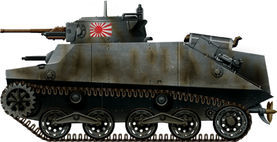 The designers choose the Type 95 Ha-Go as a base for development, keeping the engine, transmission, suspensions, drivetrain and chassis, although the hull and the turret were completely redrawn for the task. The plates were assembled by welding and rubber seals were used, instead of the usual riveted armor. Hollow pontoons made of steel plates were also designed to be fitted to the front and rear of the chassis, and could be quickly locked into place by hand. The front pontoon was divided into eight compartments, to reduce the internal flooding when hit. They could be easily jettisoned from the inside after landing. The engine transmission was modified to power the two shafts, providing a 6-knot speed on water (10 km/h), and a 150 km (93.2 mi) maximal range. The steering was provided by a pair of rudders, operated through cables running from the rear to the driver's compartment.Because the top of the hull could be flooded on rough seas, barriers were placed around the engine exhaust grid. A removable chimney was designed to be fitted over the exhaust pipe, with a watertight seal. It was covered by a bell-like dome and could be removed after landing. A raised-up "bridge" was also fitted on top the the turret when navigating. The turret itself housed both the 37 mm (1.45 in) Type 1 gun and a coaxial Type 97 machine gun, protected by an armored mantlet. The Type 1 was a standard AT gun, which could fire a 0.68 kg (1.5 lb) AP shell at a muzzle velocity of 700 m/s (2,300 ft/s). A second machine-gun was located inside the hull, protruding from the frontal glacis. The tank had a bilge pump, the road wheels had drain holes, and the bell crank suspension was internal. It was also one of the few Japanese tank fitted, from the start, with a radio and telephone intercom for the crew.